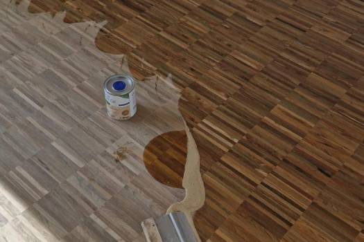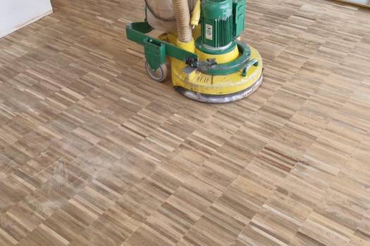 Prvním krokem bylo demontování soklových lišt a následná oprava uvolněných dílců, které jsme přilepili. Poté jsme se pustili do několika etap broušení. Nejprve jsme použili pásovou brusku, následně krajovou brusku, abychom dosáhli dokonalého výsledku i krajích podlahy. Po broušení jsme provedli celoplošné tmelení a následně provedli dokončovací broušení jemnou bruskou pro dosažení hladkého povrchu.