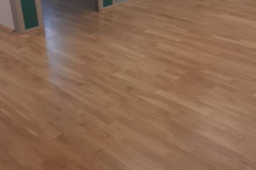 Tmelení bylo dalším krokem, který zajistil dokonalou spojitost mezi jednotlivými parketami a připravil povrch pro aplikaci laků. Jako finální vrstva byly použity laky Bona Prime, které podporují přirozený vzhled dřeva a 2x Bona Traffic, což zaručilo vysokou odolnost vůči zátěži.