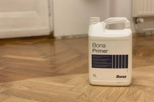 Teprve takto perfektně připravený podklad lakujeme základním lakem a 2 vrstvami vrchního zátěžového laku BONA s mezibroušením mezi jednotlivými vrstvami.