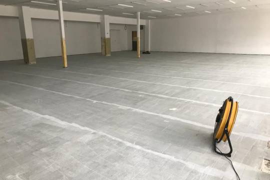 Pokládka se realizovala v rámci rekonstrukce objektu a jak to tak bývá, nejdříve bylo potřeba vyřešit nerovný podklad tvořený keramickou dlažbou s vrstvou kobercového lepidla. Pomocí škrabek se podařilo ručně odstranit vrstvu starého lepidla (strojní obroušení nebylo možné). Následovalo strojní čištění a odmaštění dlažby. Pak už to frčelo. Aplikace penetrace na nesavé podklady a celoplošné vyrovnání cementovou stěrkou.