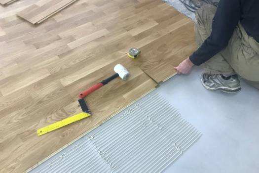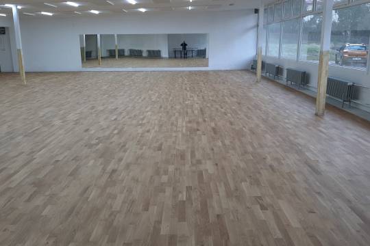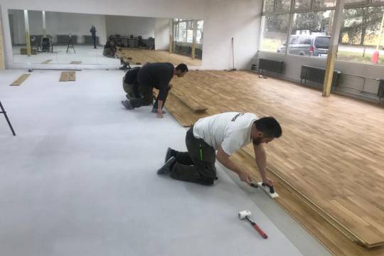 Pokládka vícevrstvé dubové podlahy ve cvičebním a tanečním sálu